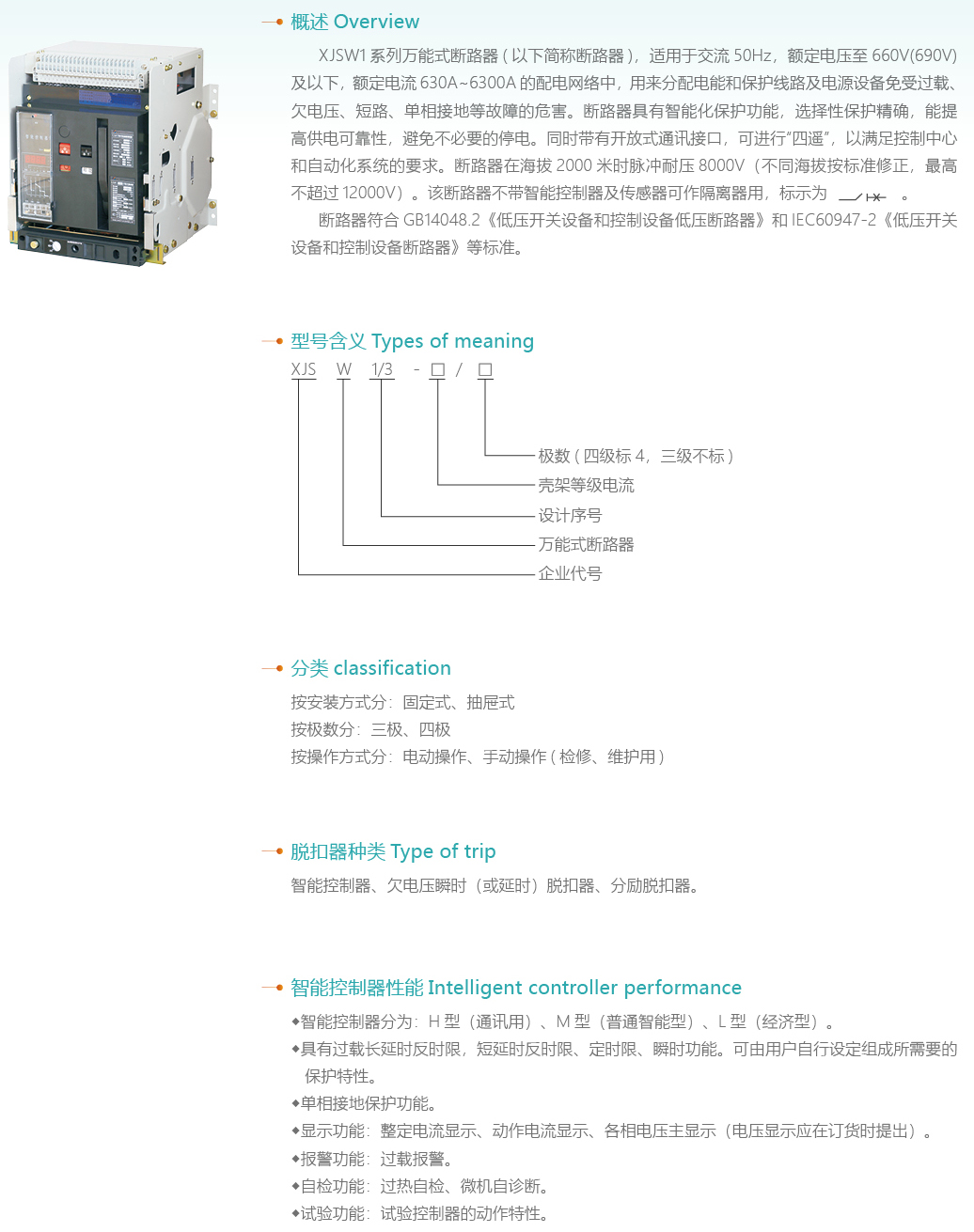 XJSW1系列万能式断路器