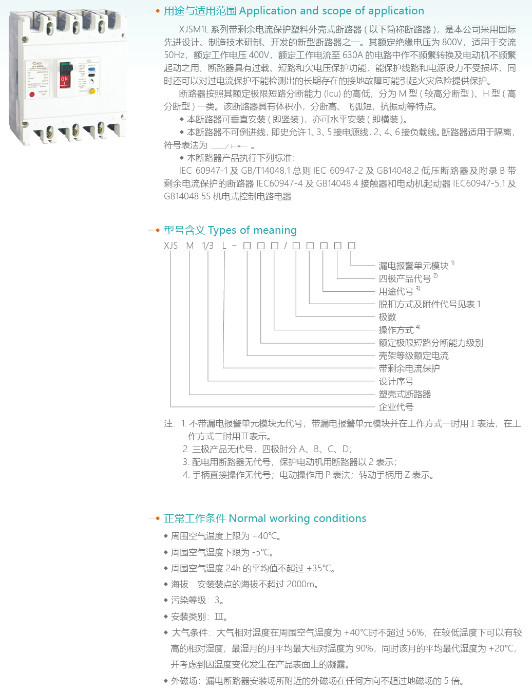 XJSM1L系列带剩余电流保护塑料外壳式断路器