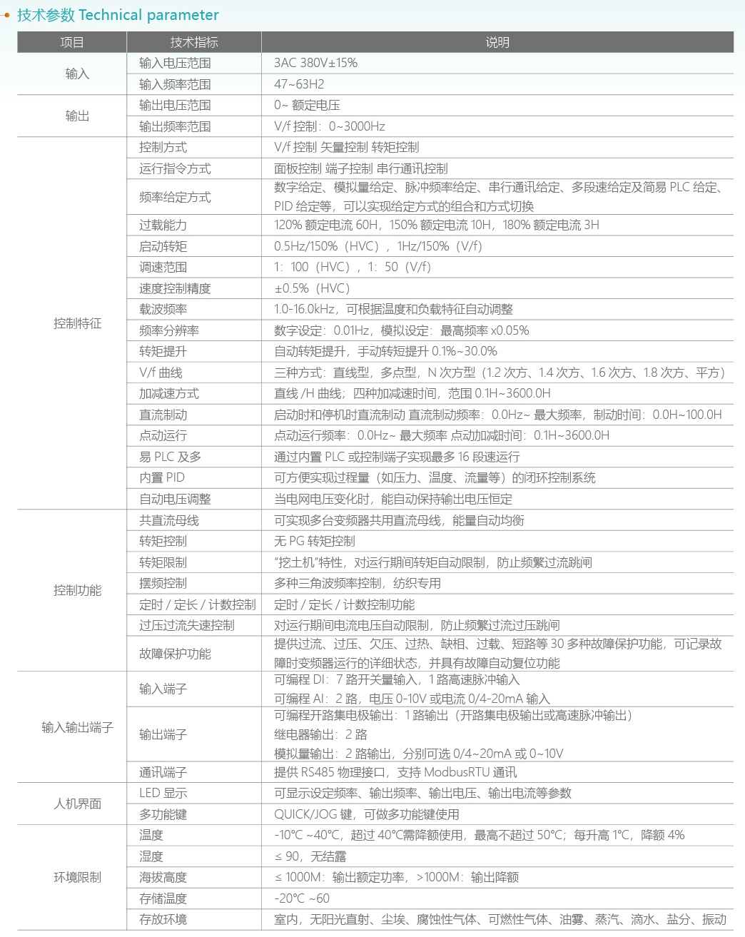 产品参数