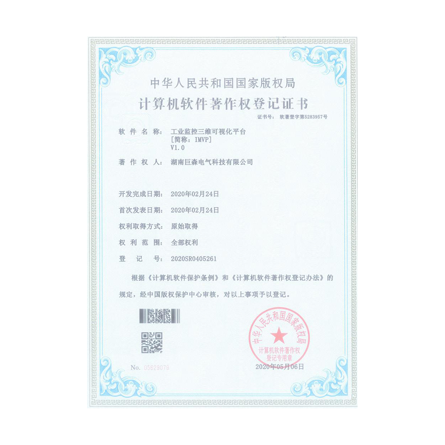 计算机软件著作权登记证书-工业监控三维可视化平台(IMVP)V1.0