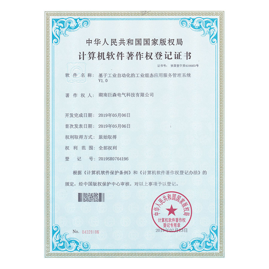 计算机软件著作权登记证书-基于工业自动化的工业组态应用管理服务系统V1.0